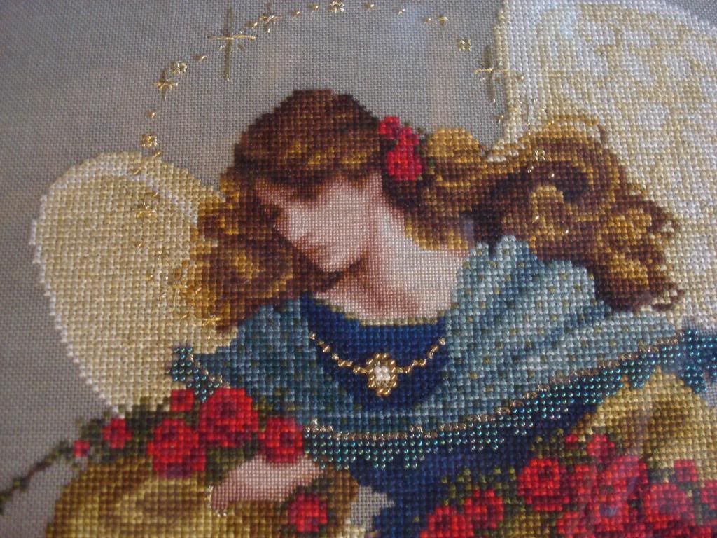 Stitched on 28 count evenweave mostly over 2 but her skin is over 1.